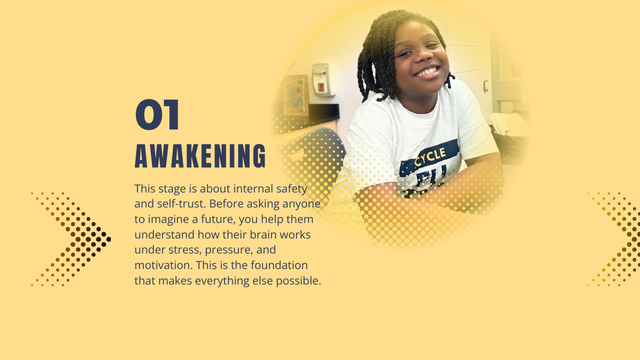 We're teaching the science of self — blending neuroplasticity, mindshifting, and purpose discovery to rewire how Future Creators think, adapt, and grow. Unlike programs that start with the outside — interviews, handshakes, and appearances — we begin within, where lasting change truly starts.